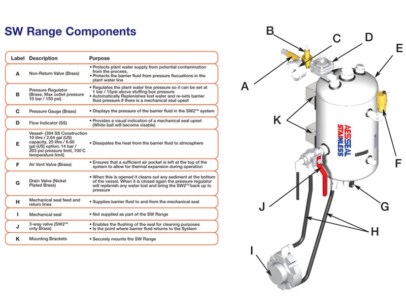 Barrier fluid is circulated to and from the mechanical seal via the thermosyphon effect. This removes water wastage and provides more efficient cooling than once-through quench to drain. The SW3 is supplied with finned tubing as standard so that it can be used on high heat applications.